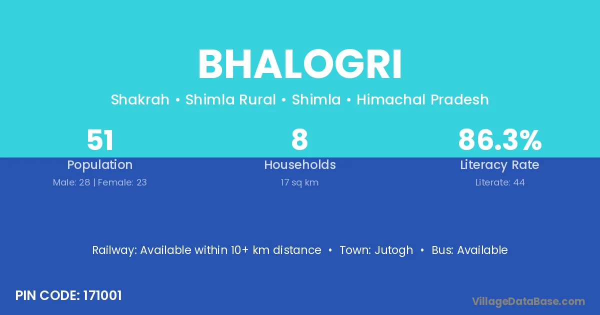 Jutogh is the nearest town to Bhalogri village for major economic activities