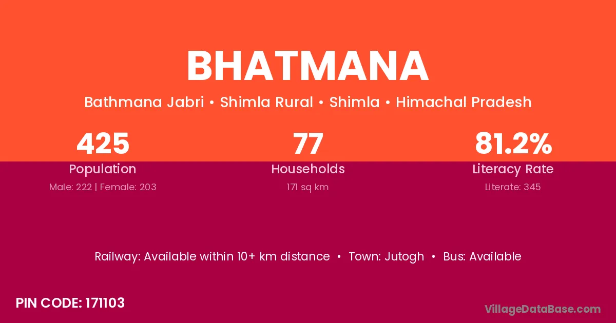 Jutogh is the nearest town to Bhatmana village for major economic activities