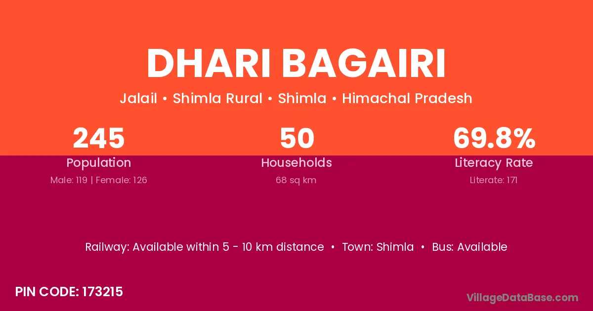 Shimla is the nearest town to Dhari Bagairi village for major economic activities