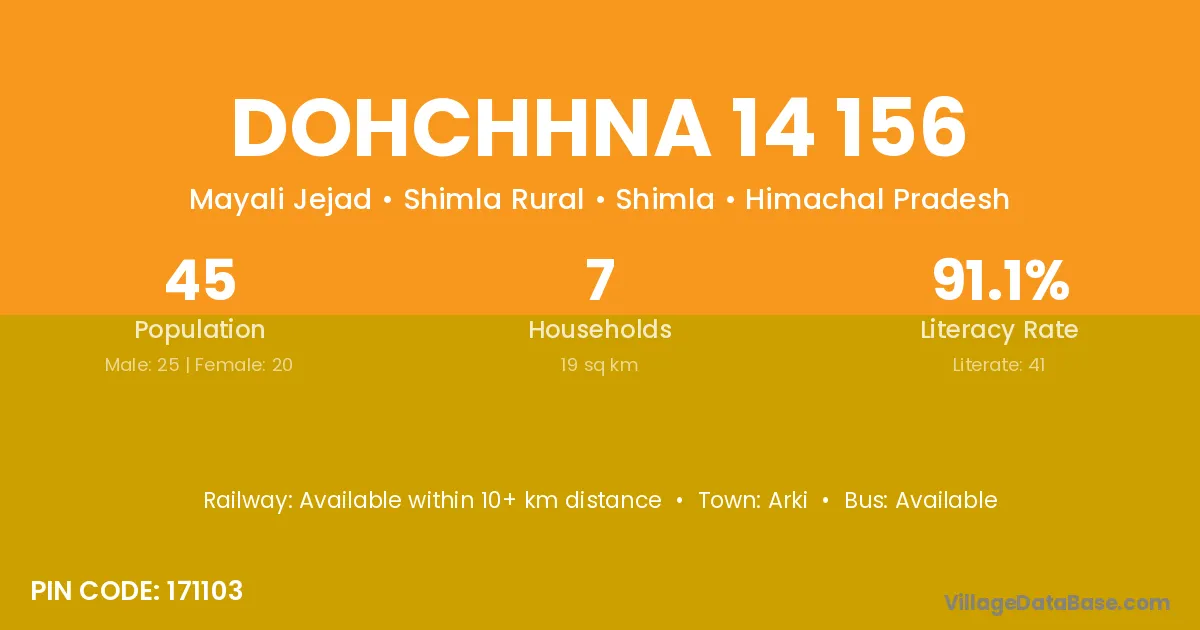 Dohchhna 14 156 village has a total population of 45 people, of which 25 are males and 20 are females.