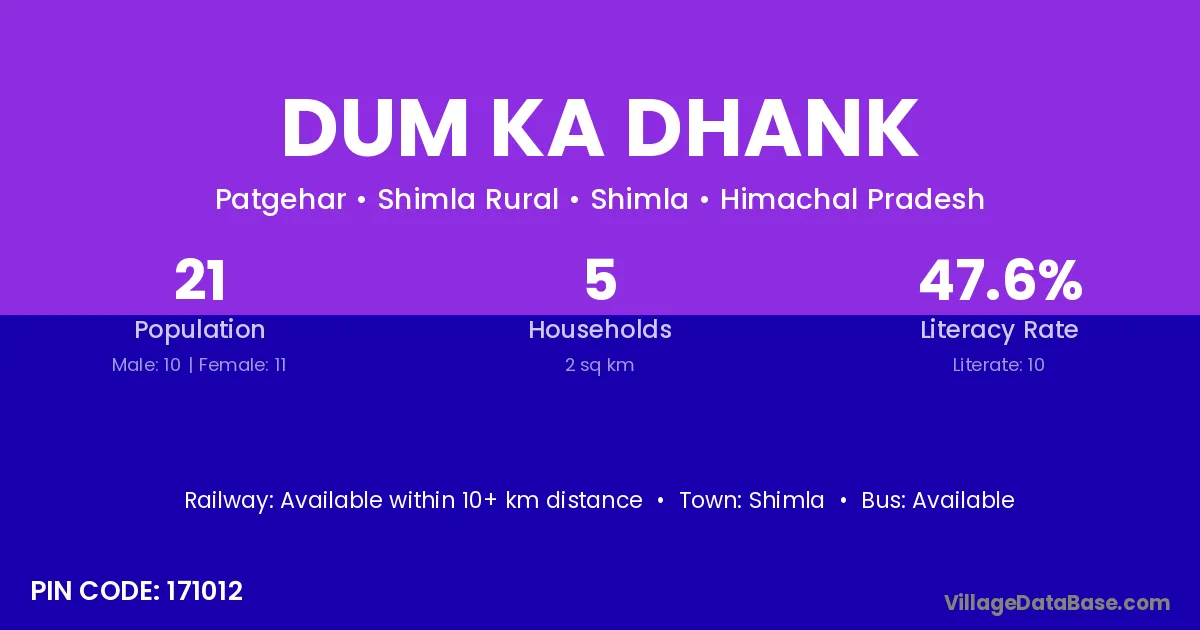 Shimla is the nearest town to Dum Ka Dhank village for major economic activities