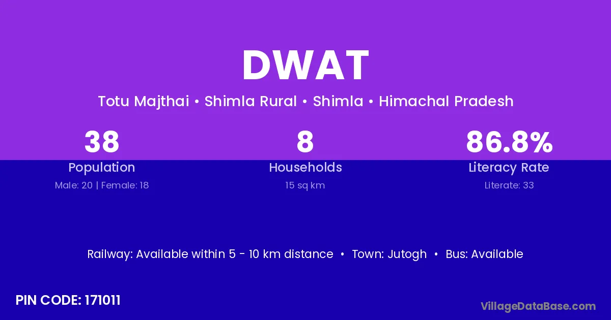 Jutogh is the nearest town to Dwat village for major economic activities