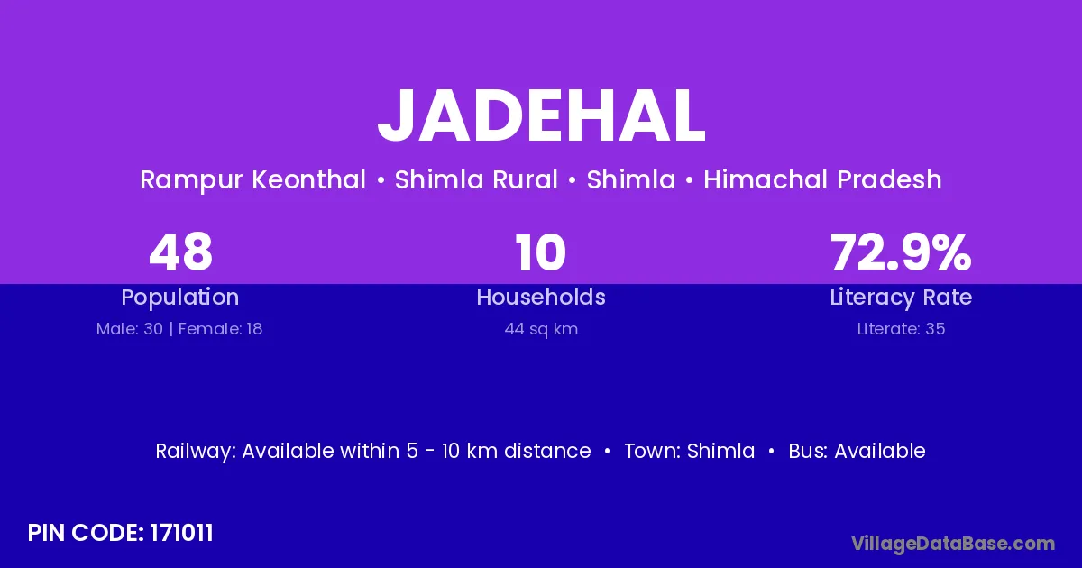 Jadehal village is located in the Shimla Rural Tehsil of the Shimla district in Himachal Pradesh .