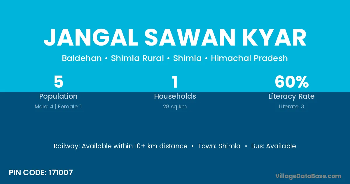 Shimla is the nearest town to Jangal Sawan Kyar village for major economic activities