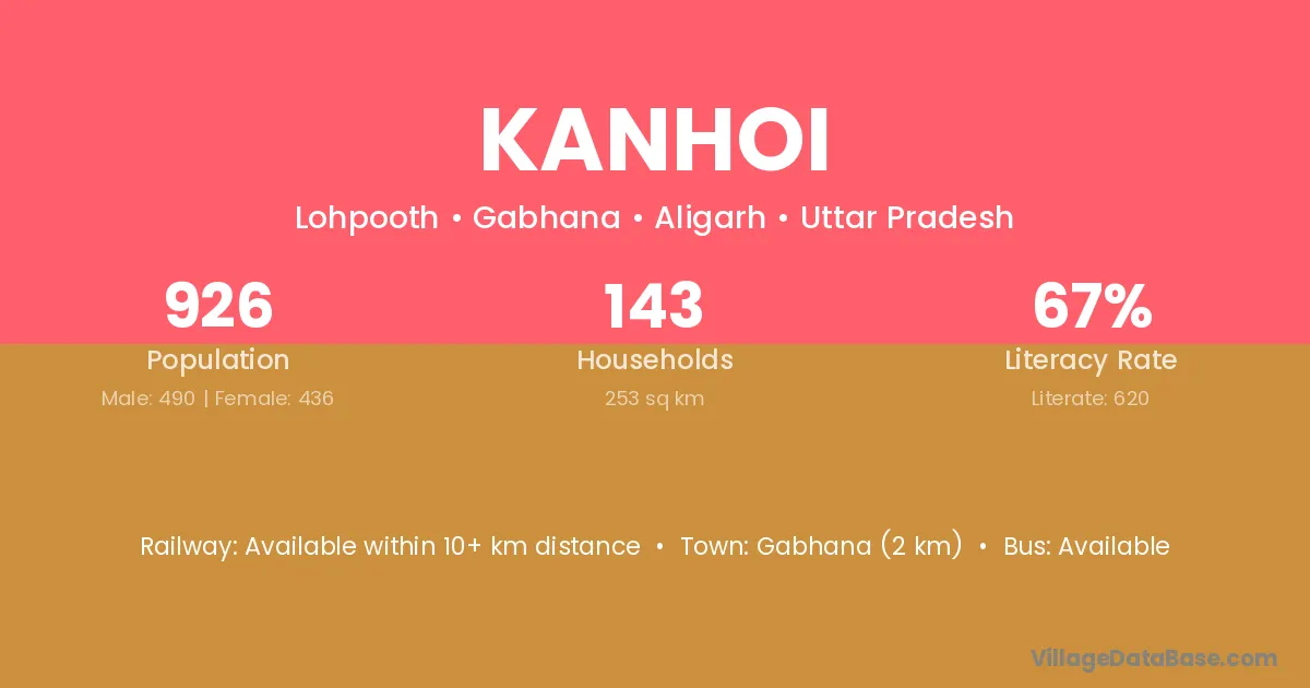 The literacy rate of Kanhoi village is 56.72%. Male literacy stands at 65.71% and female literacy at 46.88%.