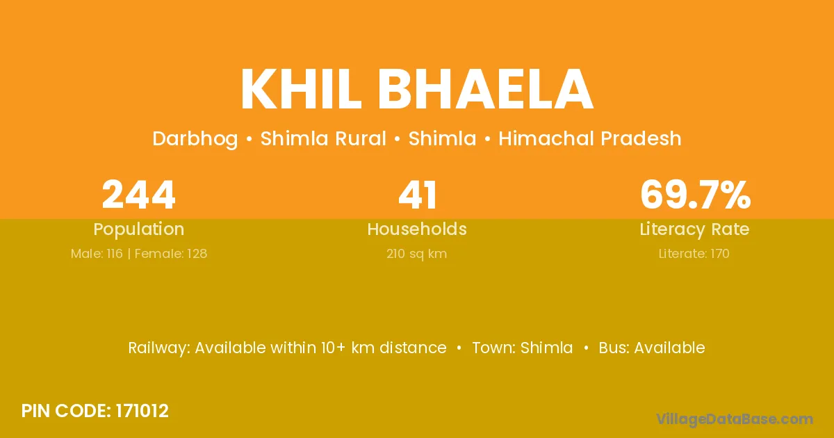 Shimla is the nearest town to Khil Bhaela village for major economic activities