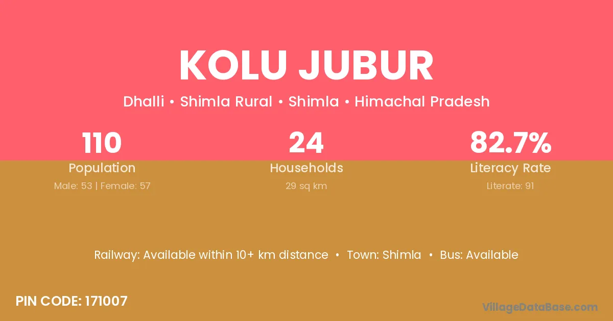 Shimla is the nearest town to Kolu Jubur village for major economic activities