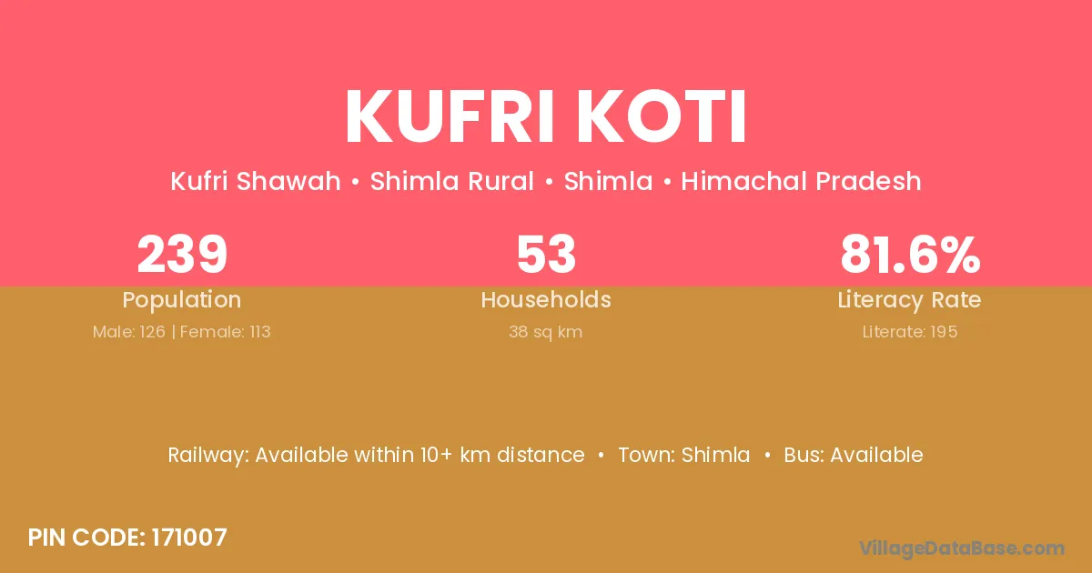 Kufri Koti village has a total population of 239 people, of which 126 are males and 113 are females.