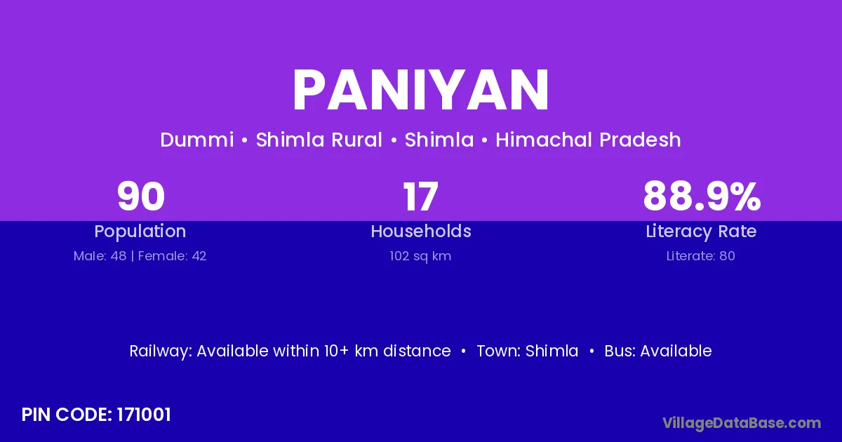 Paniyan village is located in the Shimla Rural Tehsil of the Shimla district in Himachal Pradesh .