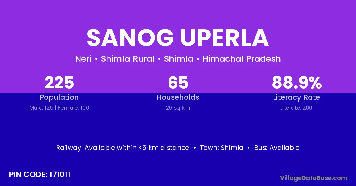 Shimla is the nearest town to Sanog Uperla village for major economic activities