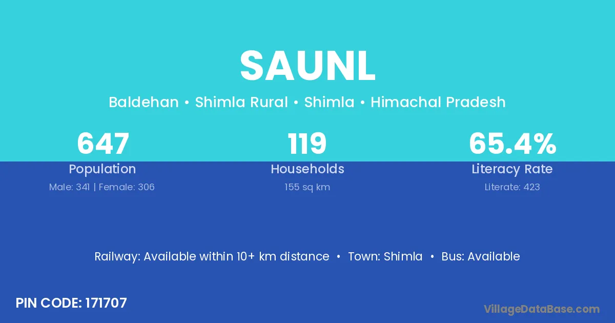 Saunl village has a total population of 647 people, of which 341 are males and 306 are females.