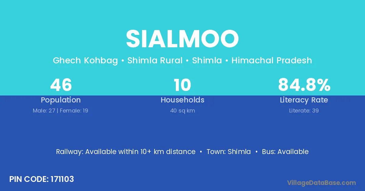 Shimla is the nearest town to Sialmoo village for major economic activities