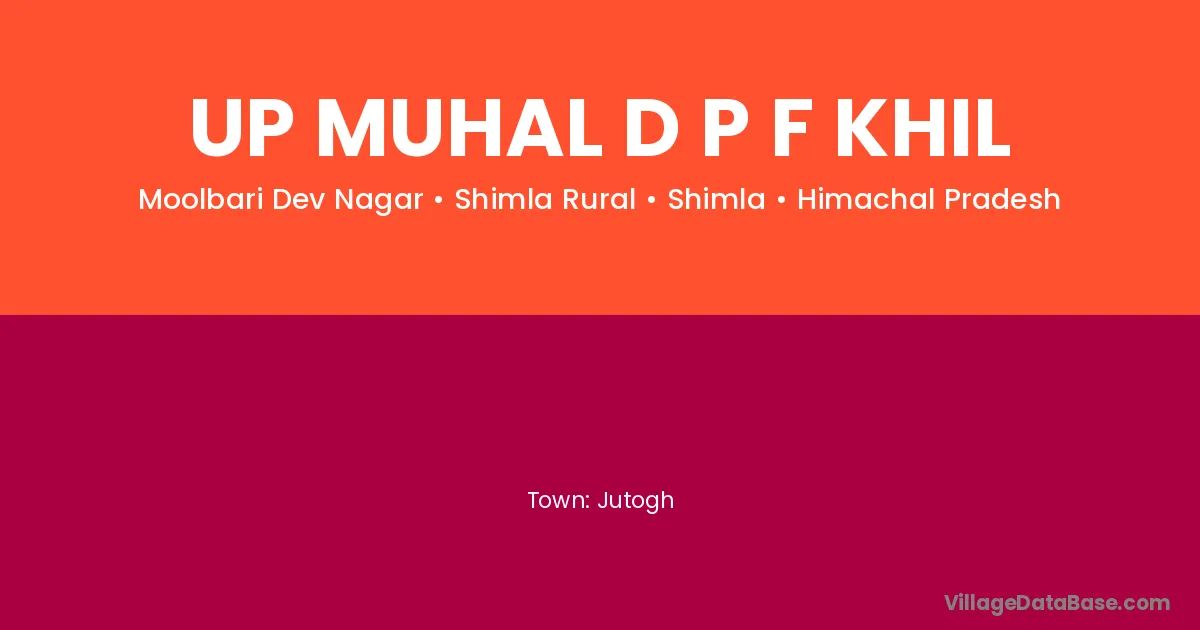 Jutogh is the nearest town to Up Muhal D P F Khil village for major economic activities