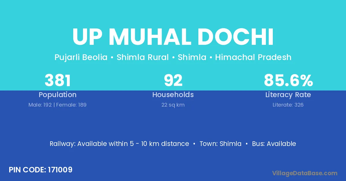 Up Muhal Dochi village has a total population of 381 people, of which 192 are males and 189 are females.