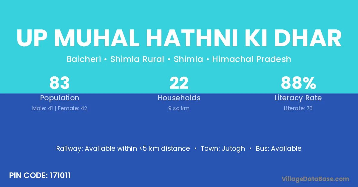 Jutogh is the nearest town to Up Muhal Hathni Ki Dhar village for major economic activities