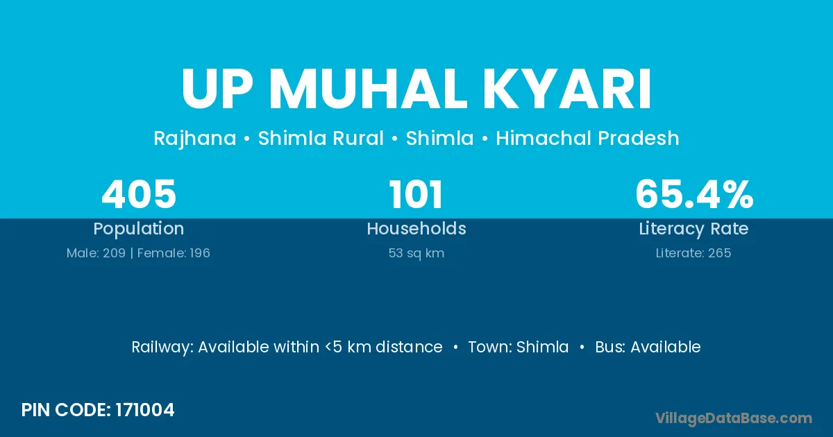 Shimla is the nearest town to Up Muhal Kyari village for major economic activities