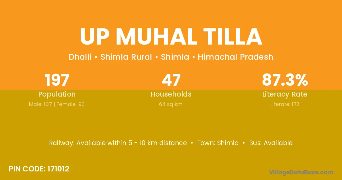 Shimla is the nearest town to Up Muhal Tilla village for major economic activities