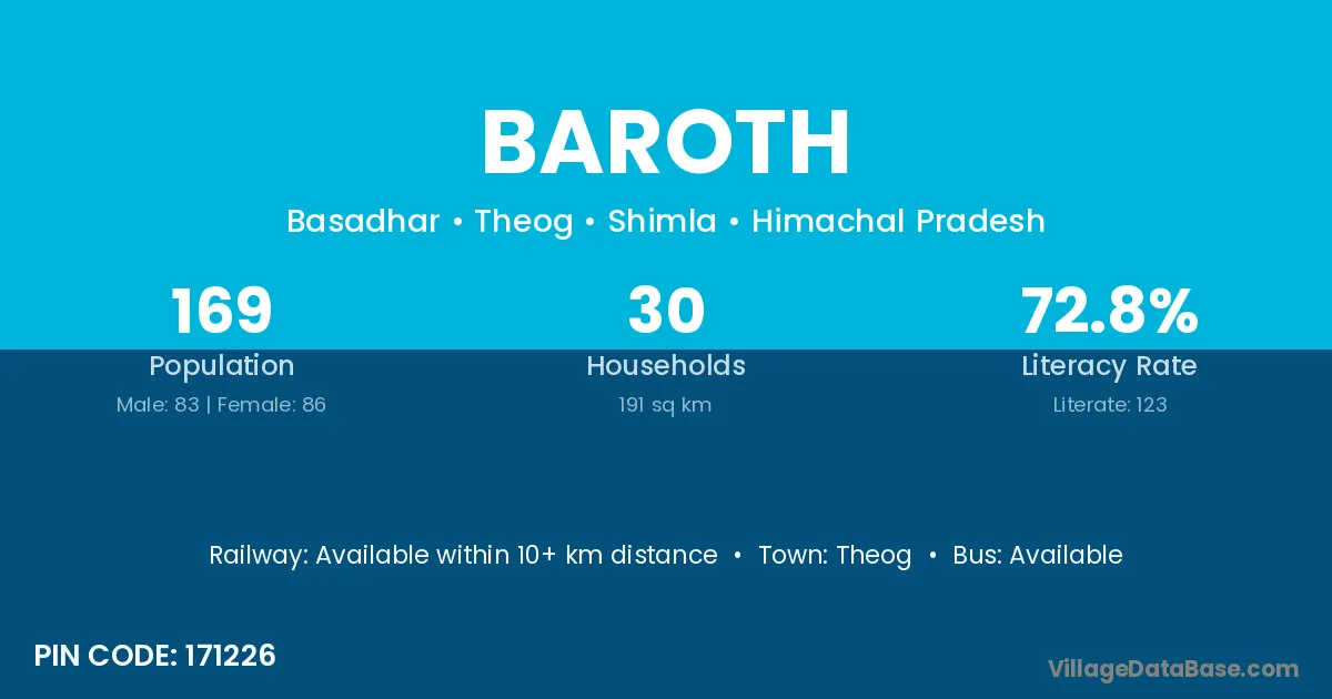 Theog is the nearest town to Baroth village for major economic activities