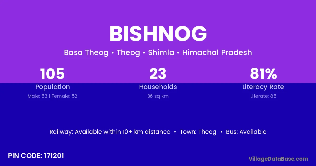 Theog is the nearest town to Bishnog village for major economic activities