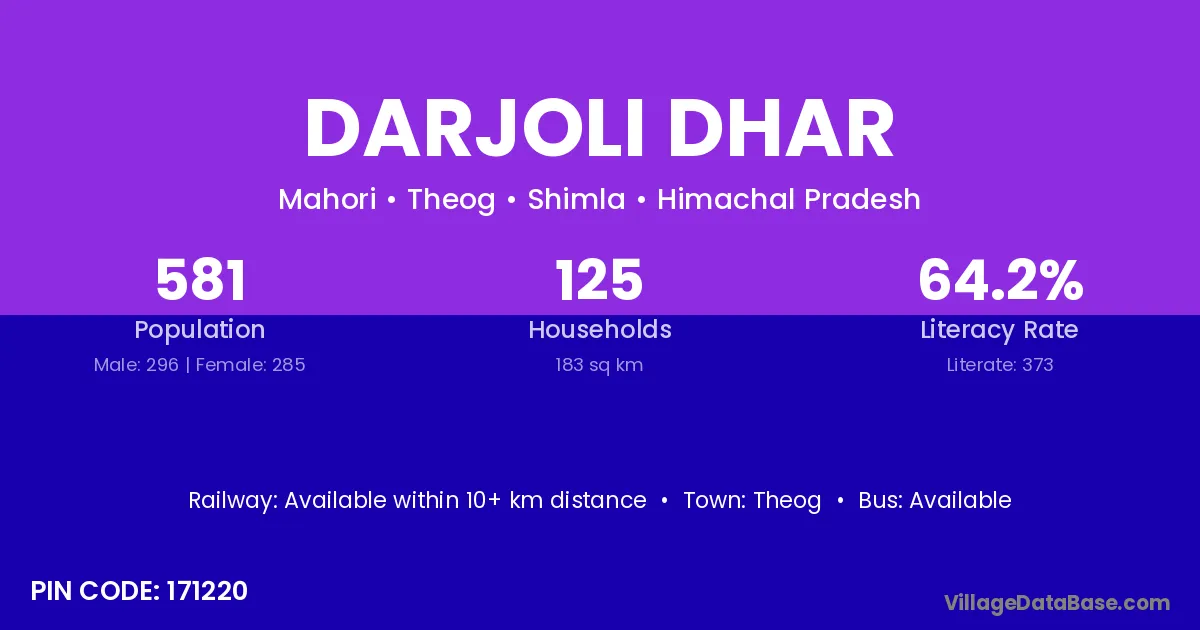 Theog is the nearest town to Darjoli Dhar village for major economic activities