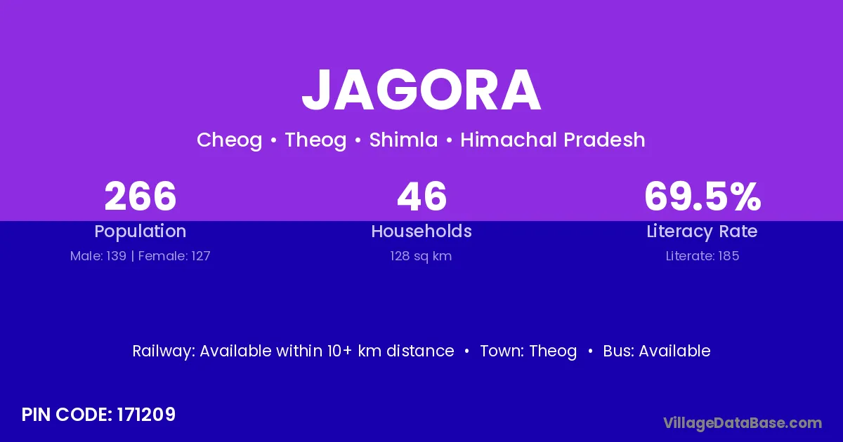 Jagora village has a total population of 266 people, of which 139 are males and 127 are females.