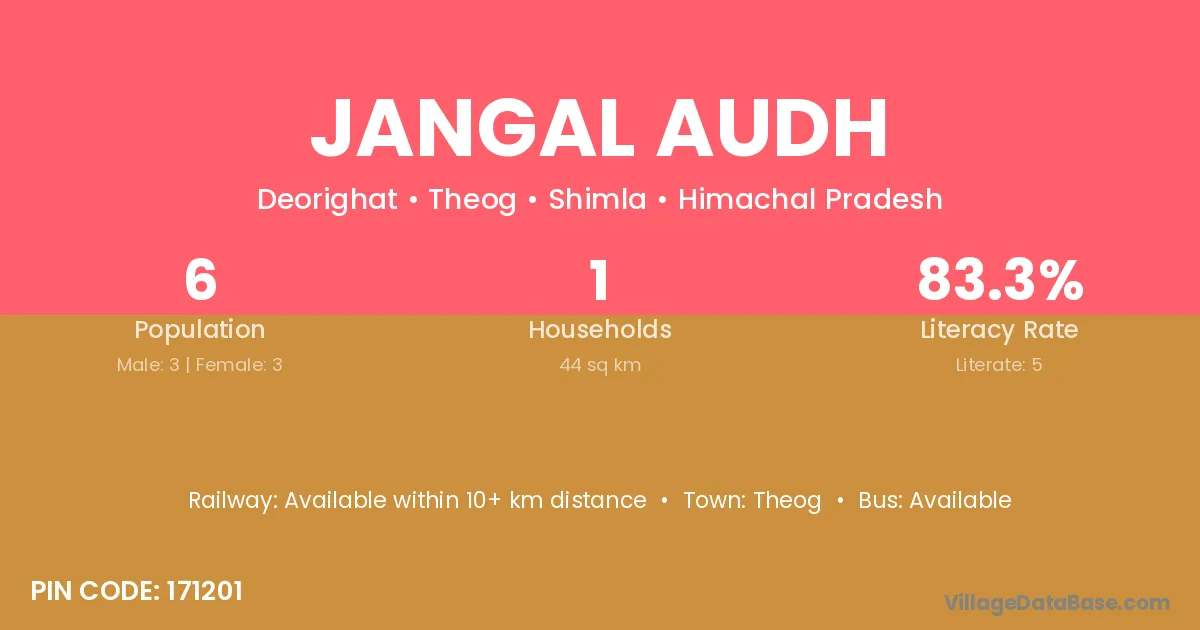 Jangal Audh village has a total population of 6 people, of which 3 are males and 3 are females.