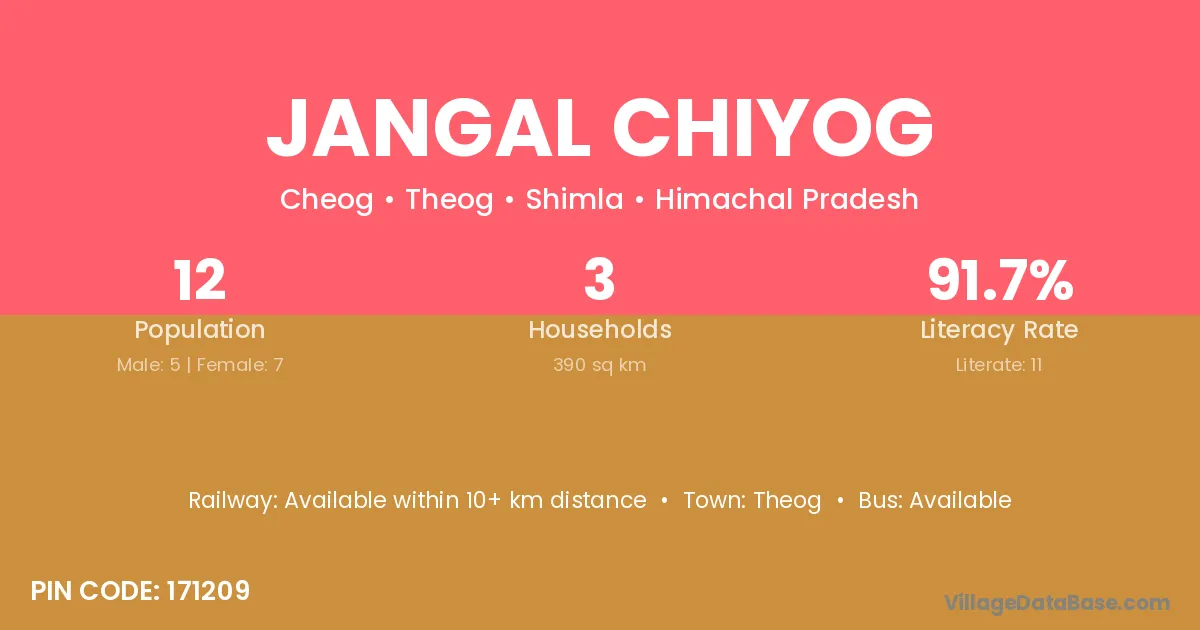 Jangal Chiyog village has a total population of 12 people, of which 5 are males and 7 are females.
