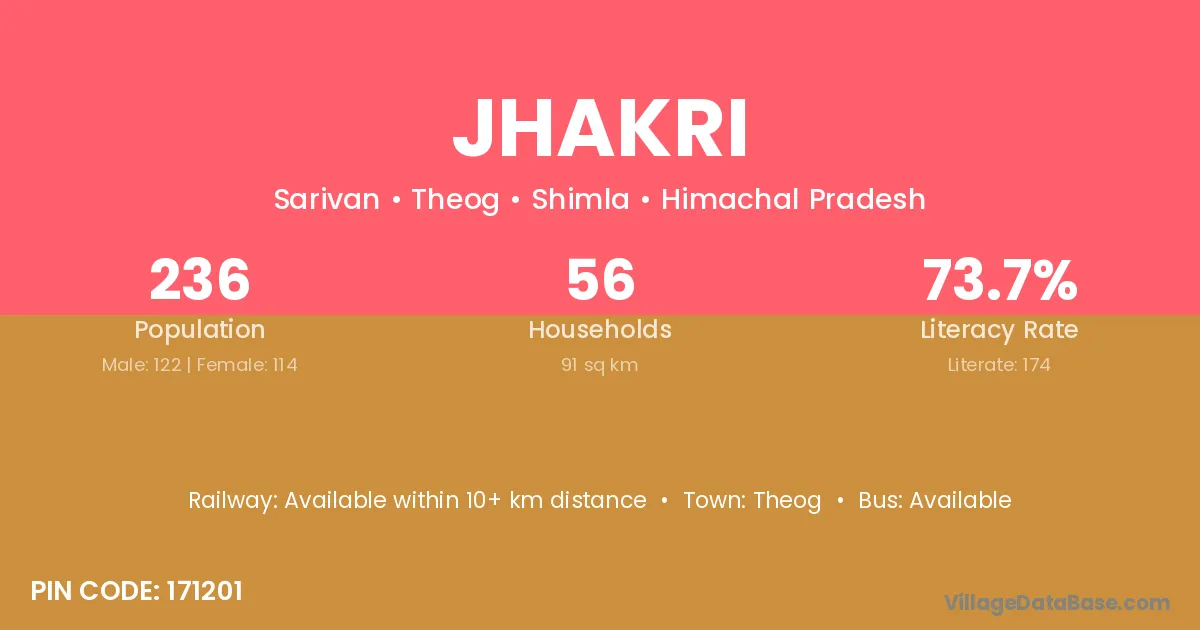 Jhakri village has a total population of 236 people, of which 122 are males and 114 are females.