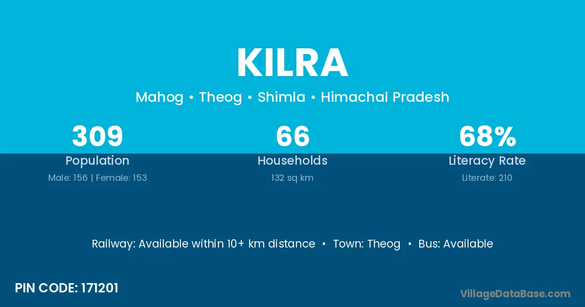 Theog is the nearest town to Kilra village for major economic activities