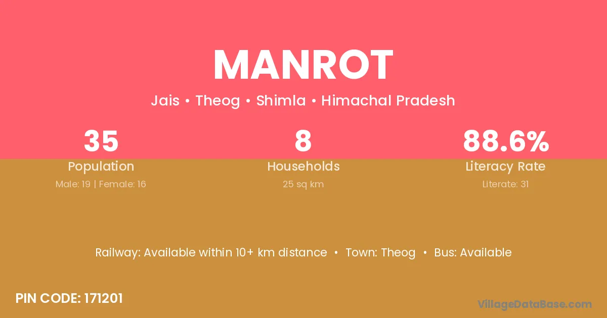 Manrot village has a total population of 35 people, of which 19 are males and 16 are females.