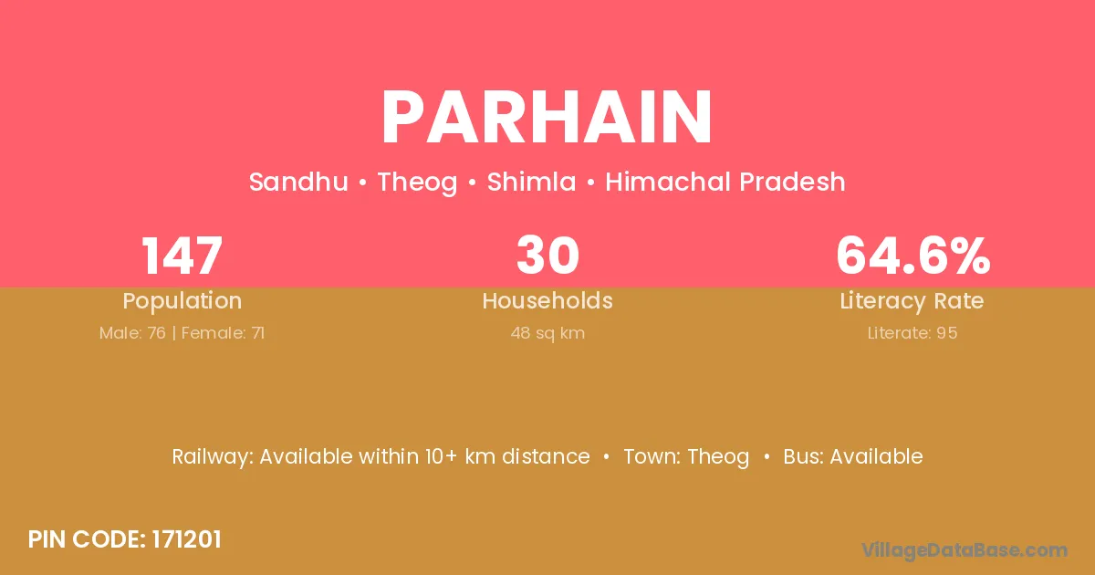 Parhain village has a total population of 147 people, of which 76 are males and 71 are females.