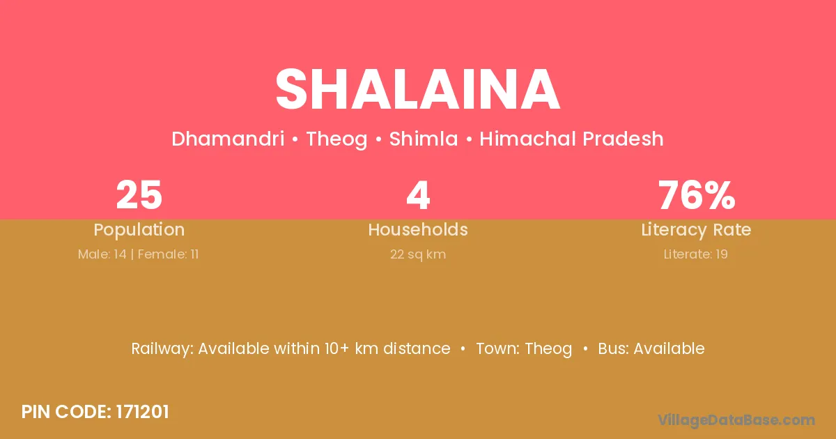 Shalaina village has a total population of 25 people, of which 14 are males and 11 are females.