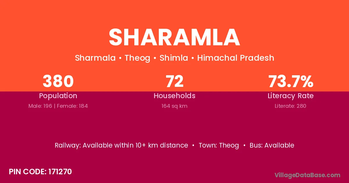 Sharamla village has a total population of 380 people, of which 196 are males and 184 are females.
