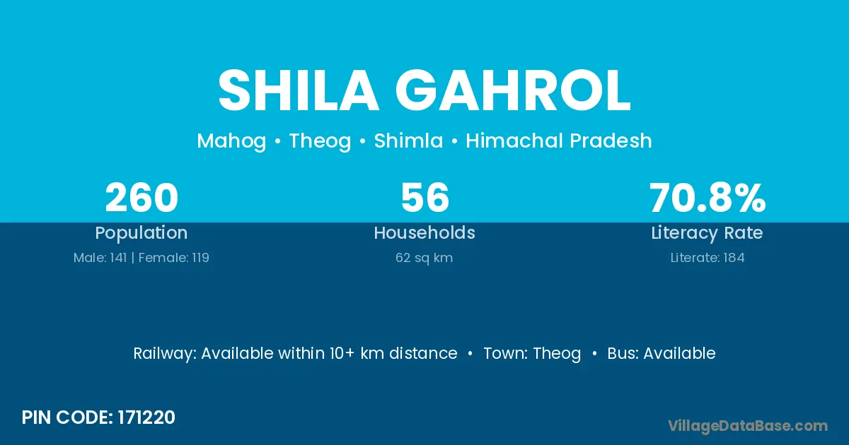 According to Census 2011 information, the village code of Shila Gahrol village is 171220.