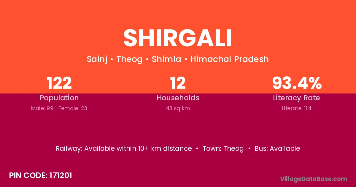 Shirgali village has a total population of 122 people, of which 99 are males and 23 are females.