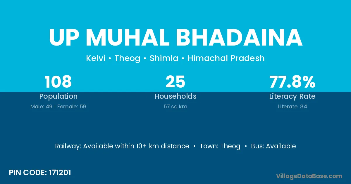Theog is the nearest town to Up Muhal Bhadaina village for major economic activities