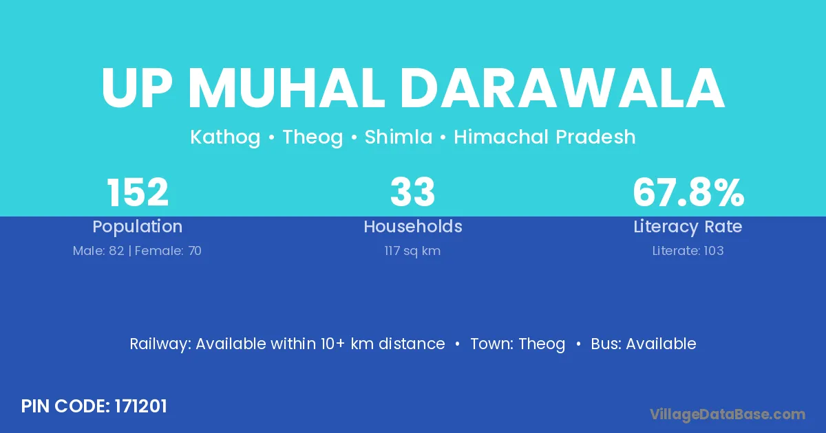 Theog is the nearest town to Up Muhal Darawala village for major economic activities