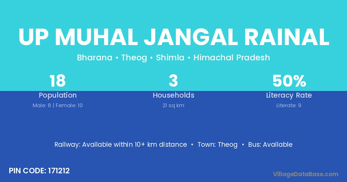 Up Muhal Jangal Rainal village has a total population of 18 people, of which 8 are males and 10 are females.