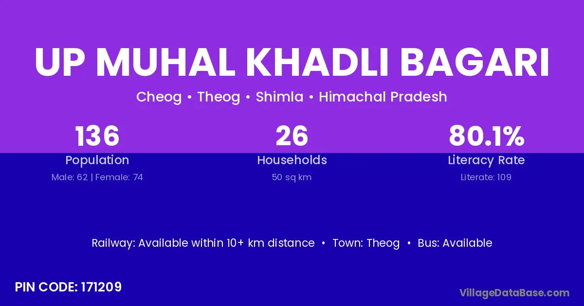 Theog is the nearest town to Up Muhal Khadli Bagari village for major economic activities