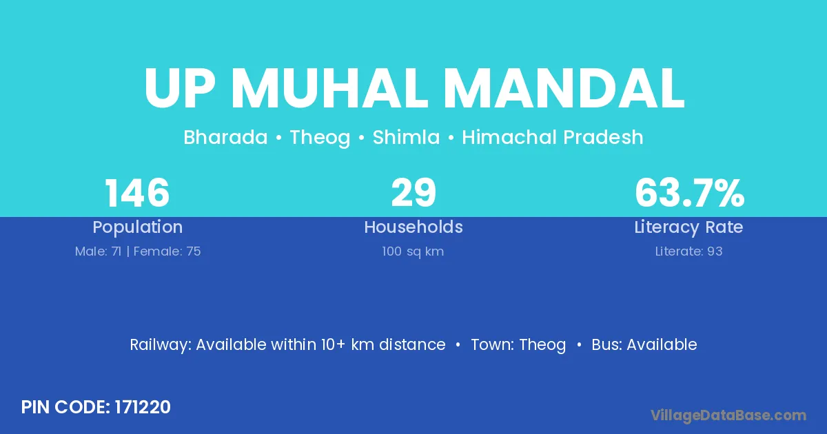 Theog is the nearest town to Up Muhal Mandal village for major economic activities