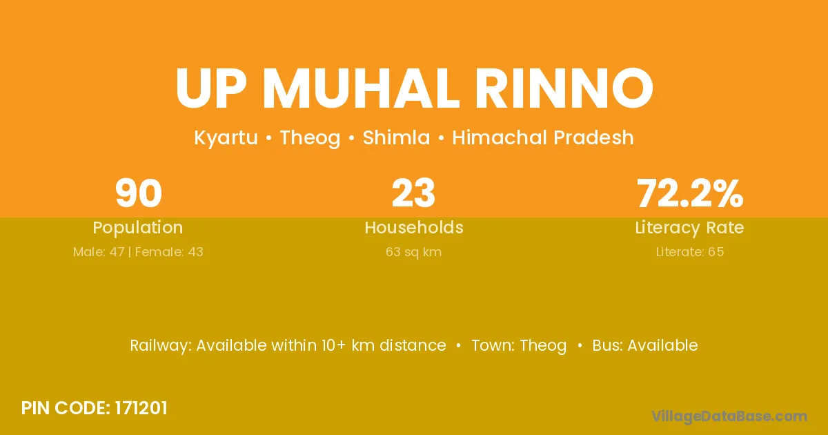Theog is the nearest town to Up Muhal Rinno village for major economic activities