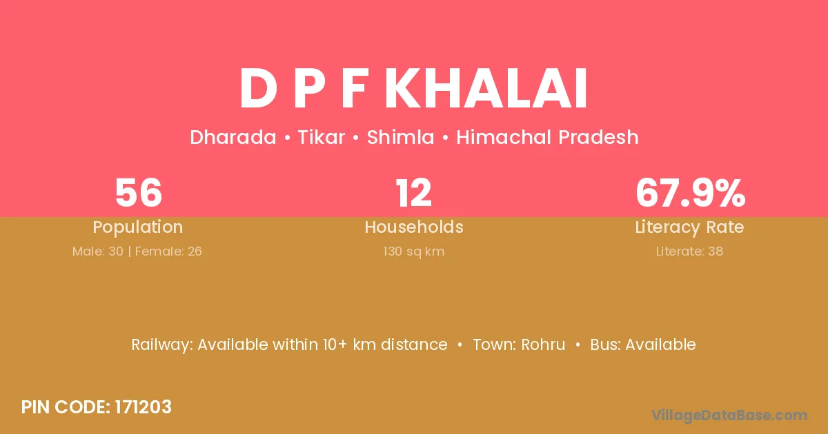 Rohru is the nearest town to D P F Khalai village for major economic activities
