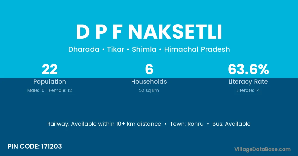 D P F Naksetli village has a total population of 22 people, of which 10 are males and 12 are females.