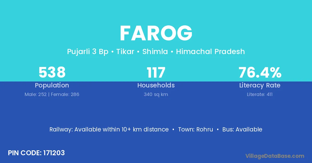 Rohru is the nearest town to Farog village for major economic activities
