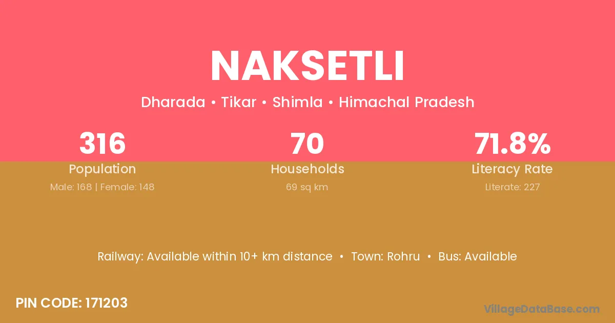 According to Census 2011 information, the village code of Naksetli village is 171203.