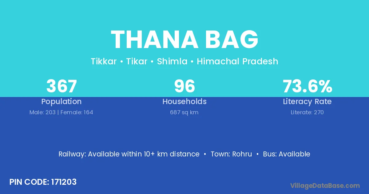 Rohru is the nearest town to Thana Bag village for major economic activities