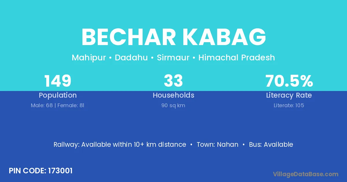 Nahan is the nearest town to Bechar Kabag village for major economic activities