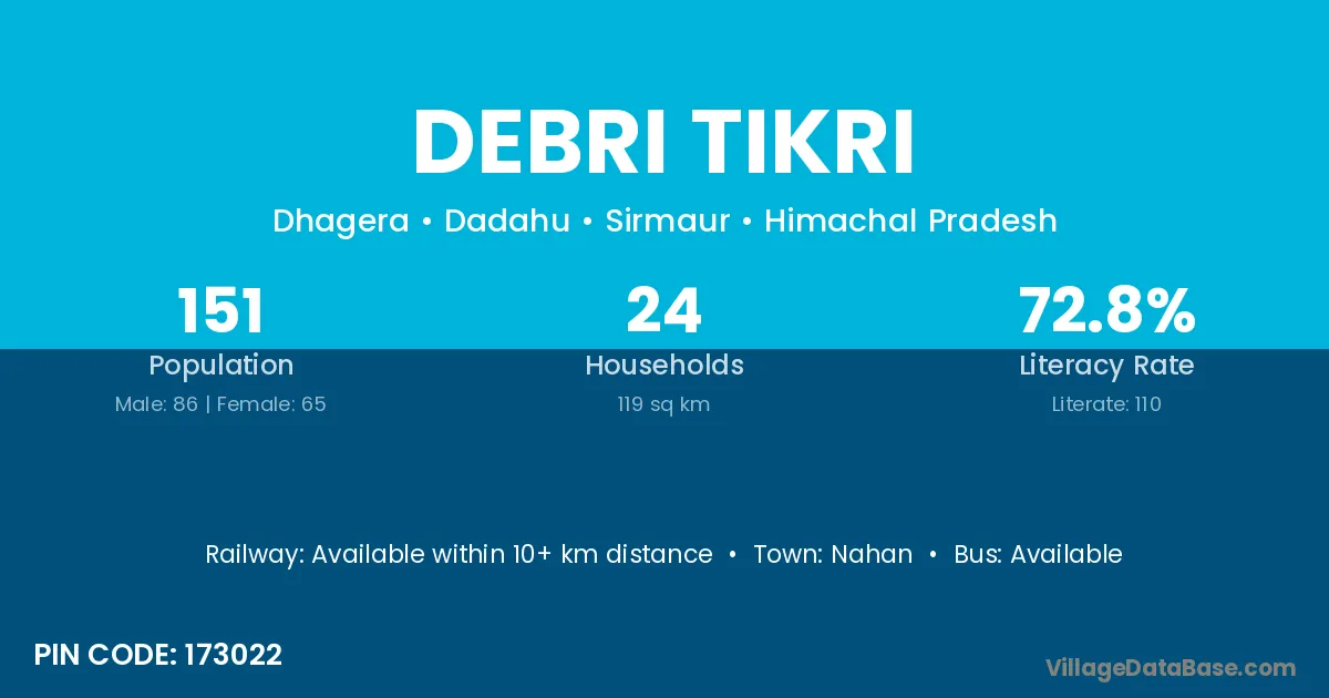 Nahan is the nearest town to Debri Tikri village for major economic activities