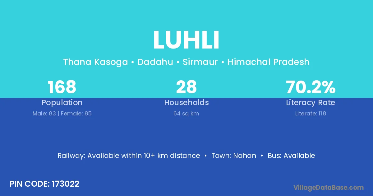According to Census 2011 information, the village code of Luhli village is 173022.