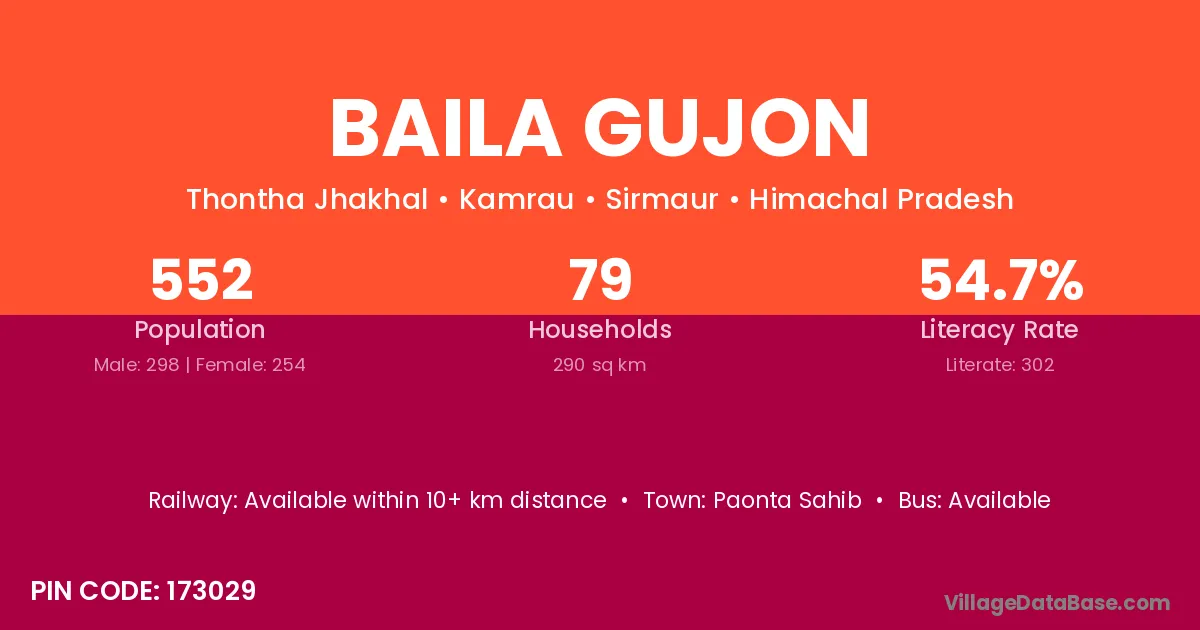 Paonta Sahib is the nearest town to Baila Gujon village for major economic activities